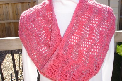 Add a little sparkle to your neck with this lightweight cowl. It looks like you would need a cable needle to work this stitch and you don’t, the pattern is optional to work on straight needles or circular needles. You decide which you like working on better. This will look great with all of your accessories. Easy to block