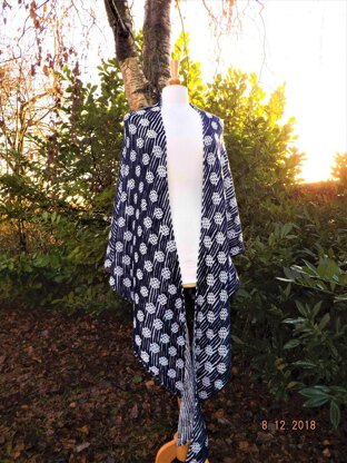 The pattern includes directions for knitting a large as well as a small shawl. Large shawl (width: 265 centimeters, Height: 70 centimeters). Small shawl (width: 165 centimeters, Height: 50 centimeters).