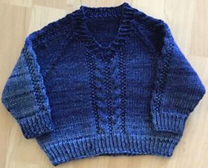 Great for a gift to keep any little one cozy. It's worked in the round from bottom up, with sleeves worked separately to beg of raglan decreases.