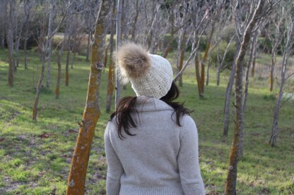 Snow Bank is knit entirely in the round, brim up and seamless, this is super-fast to knit. The fur pompom can be found in the Etsy shop: Wabarna