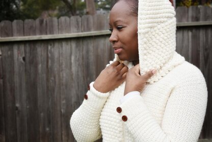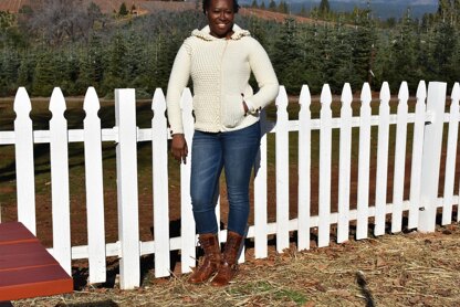 This design was inspired by cozy, chic warmth and a little eclectic pizazz! The interplay of puffs and textured stitches really is what this jacket it all about.