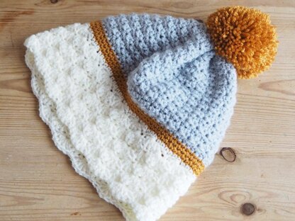 Part of the 'Snow Dipped' set this cute hat design is an extra layer of warmth. Made in Stylecraft special dk Silver, cream and gold for a soft winter feel, but you can choose any three of your favourite colours! And don't forget to have fun with the large pom-pom on the top. The matching scarf and mitts are available to purchase and that whole set can be made with 3 100g balls silver, 2 100g balls cream and 1 100g ball gold Stylecraft Special dk. I hope you enjoy making and wearing or gifting your Snow Dipped Slouchie Hat!