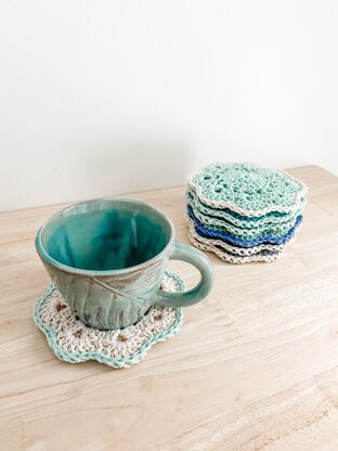 Extra thick coasters with a scalloped edge.
