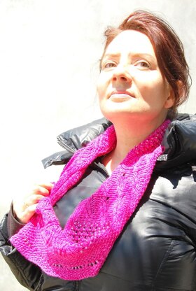 This reversible lace cowl pattern is worked in the round, from the bottom up. The lace and beading is worked in asymmetric sections to give you a cool wrap around your neck. The lace is relatively easy to remember and can be worked in different ways so all the people on your list have a unique cowl.