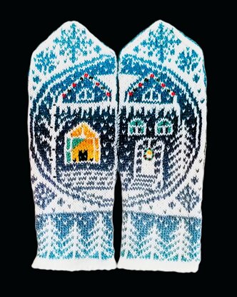 “Snow Globe Mittens” have so many of the things I love: delicate snowflakes, snow-covered trees, a cozy cottage, a curious kitten, and anticipation of a Christmas miracle - all encapsulated in a snow globe!