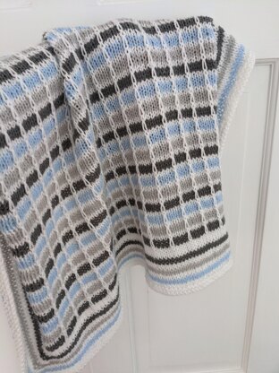 This beginner knit pattern is for a newborn baby blanket. It features 3 horizontal stripes of color among raised vertical stripes of white. The texture and stripes of the blanket resemble the beautiful bark of Snow Gum trees (a type of Eucalyptus). This blanket is for one size - 60cm x 60cm but can easily be modified.