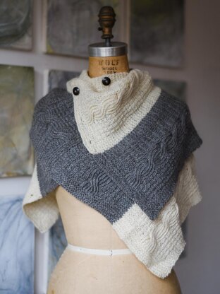 This unique and quirky poncho design is Knit in sport weight wool for a warm, handsome layer, it’s one of those gifts that will suit anyone on your list. The bold motif is a snap to learn and simple to execute; the length is easily adjusted to suit different yardages or yarn weights. This poncho is made in four identical strips with, the option for a color-block stlye, and sewn together. It’s as charming to knit as it is to wear!
