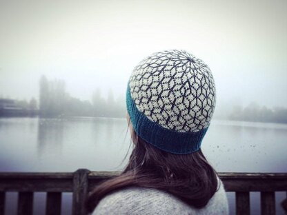 This hat was created by blending the traditional snowflake used in stranded colorwork Nordic knitwear, with the graphic and simple lines of modern scandinavian design.