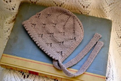 Keep your little one warm until the snowdrops appear in springtime. This is a pretty little baby bonnet with a simple lace pattern and cute picot edging that works up very quickly in sport weight yarn.