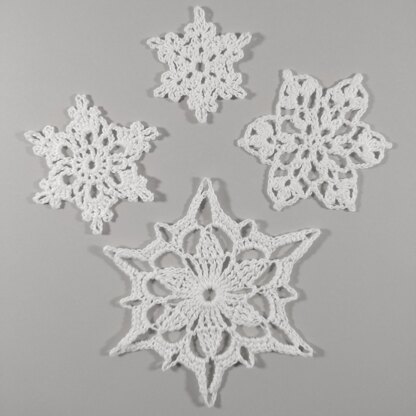 As pictured, the snowflakes measure between 2" to 4" across using size 10 crochet thread and a 1.5mm hook. And, they can be easily sized up or down by adjusting hook and thread size.