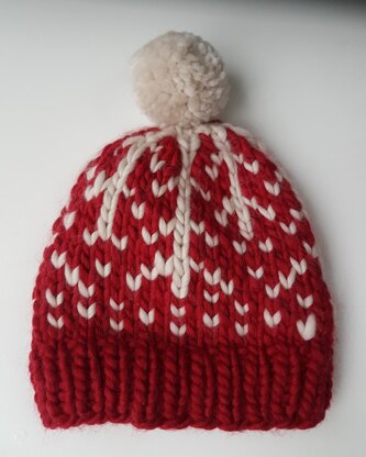 This lovely hat is very quick to knit up and creates the pattern of a snowflake at the crown. The colours are stranded so the hat is super cosy with two layers of gorgeously soft wool on your head. You could have great fun with different colour combinations.