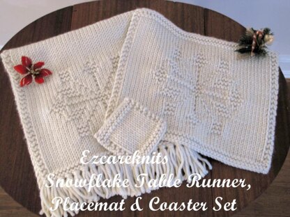 This listing includes three knitting patterns. A Snowflake Table Runner, a Snowflake Placemat and a Coaster. These patterns are easy and quick to knit up. All three patterns use knit and purl stitches only making the patterns suitable for beginner. This makes a beautiful holiday table runner with the matching placemat and coaster using super bulky yarn. I like using super bulky yarn in many of my knitting projects especially because it makes a thick table runner or placemats that stays in place and protect the table. The yarn I used throughout this Holiday project was the Hometown Lion Brand yarn in a Los Angeles Tan with US 13/9mm straight knitting needles. Patterns are for personal use only. Patterns, designs and pictures are copyright and the property of Ezcareknits. Designs are strictly prohibited from use in another pattern for sale. By purchasing these patterns, you agreed to abide by these terms of the sale.