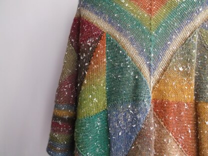 Snowflakes? Named so because the white flecks in this yarn look like a flurry of snowflakes have landed on the shawl.