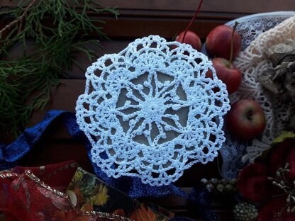 What you need: I used italian cotton thread "TitanWool" Magnum 100 n. 12 , (100 gr. +/- 900 mt), you need 10 gr. Crochet steel hook (#1.00) Scissors Difficulty level: easy Stitch Guide: ch = chain ss = slip stitch sc = single crochet dc = double crochet Size of the finished doily in case of using the yarn from my example is about 3 inches, 8 cm.