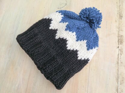 This quick and easy hat pattern is worked in the round with chunky yarn and comes in three sizes to fit all the family. Inspired by snow capped mountains, it has a simple Fair Isle pattern . To make sure everybody stays extra warm, instructions include how to line the hat with polar fleece, so it will not let any wind in.