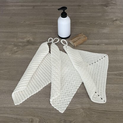 SNOWY SET OF 3 WASHCLOTH DESIGNS - for you to make quick handmade gifts. Kitchen decor | bathroom decor | dishcloths | facecloths | flannels. 2 textured designs and a cute solid granny square. Optional loops for hanging. Easy quick DIY gifts that can be made in a day for last minute Christmas gifts, Holiday gifts or Housewarmings gifts for friends and family or make these unique trendy cloths to dress up your own bathroom or kitchen. Make them in 100% Cotton for Eco Friendly reusable fashionable decor accessories.
