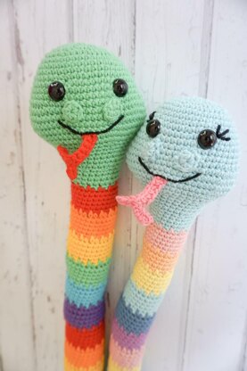 Using DK 8ply yarn, your finished ssssssssnake will measure approx 34cm (13.5"), but you can make them any length you would like! Your snake will also be bigger or smaller depending on the type of yarn/hook you use. Pattern is in US terminology, basic amigurumi knowledge required.