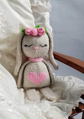 I think this bunny has a sweet, heirloom type look about her. She is soft and snugly and very easy to make if you are comfortable working with dpns.