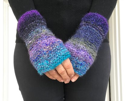 - The featured wrist warmers were made from leftover lengths of Noro Silk Garden. Details are included in the pattern.