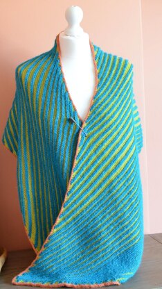 So Long is a wrap or very wide scarf (you can wear it round your neck very cosily!) which drapes over the arms or around the body and is constructed with continuous welts which create an extra squishy, cosy feel. The wrap is knit on the bias in a parallelogram shape with an ever increasing distance between the welts - the distance then decreases again as you knit to the end.