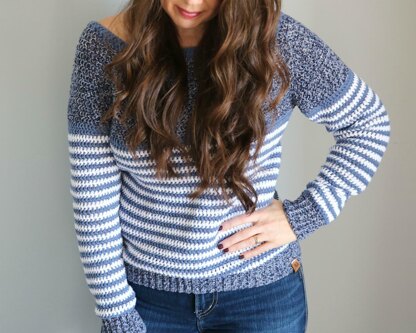 PDF digital download crochet pattern for Child and Adult So Soft Stripes Raglan Pullover. Children sizes 2-10 and Adult XS-3X.