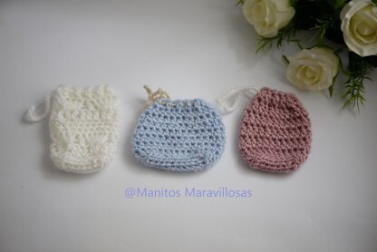•This pattern is written in US terms. •This pattern contains 3 different patterns for soap saver bags •Sizing will vary depending on how tightly or loosely you crochet. Gauge is not necessary for this pattern but if you would like to keep the sizing the same, please check your gauge before starting this project. •Row 3/Round 3 is a row that turns into a round. You will crochet all the way across the row and then work down the side, around the bottom, and up the other side to turn it into a round. •Use two stitch markers: one to mark the chain where you are making the sl st to end the rounds, the other to mark the last st of your rounds. •Be aware that it is intended to use a bigger hook that the one recommended by the yarn manufacturer. •It is highly recommended that you read through the pattern completely before beginning to crochet