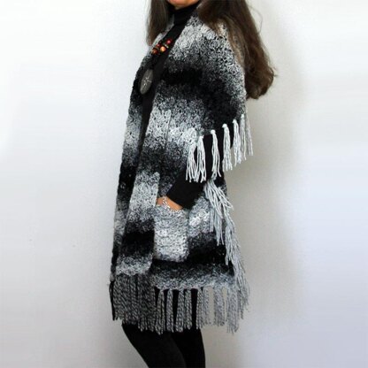 This stylish fringed pocket wrap is easy to crochet and can be made to fit any size using the tips included in the pattern. It is easy pattern to crochet and is made with pretty shell stitches.