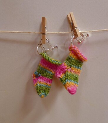 This is a great project for using up little bits of sock yarn and if you are a sock lover you can make yourself a cute if slightly kitsch pair of earrings. If you have friends who love knitted socks but you don't want to go to the whole bother of knitting an entire pair of socks then surprise them with this tiny gift. They will work as clip ons or for pieced ears. Socks are so versatile. Don’t be put off by the small scale they are quite easy to make especially if you are familiar with the structure of a regular knitted sock. Just don’t let your cat near them. My cat Plum was particularly fascinated with these small specimens and kept trying to carry them off to parts unknown.!