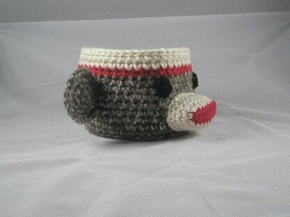 Imagine all the different color sock monkey bowls you can make. This pattern comes with 5 pages of instructions and pictures. I hope you enjoy this pattern and make many bowls. Supplies: 4 ply worsted weight yarn Bowl (I used Taupe Mist in Lions Brand Vanna's Choice, Off-White and Red in Read Heart Yarns) approx. 15 yards off-white for bowl and mouth Ear (I used Taupe Mist in Lions Brand Vanna's ChoiceYarn) approx.. 120 yards for bowl and ears Mouth (I used Off- White & Red in Red Heart Yarn) approx. 10 yards of red for bowl and mouth Eye (I used Black in Red Heart Yarn) approx. 2 yards G hook Yarn needle A very little amount of Polyfill stuffing (or your choice of stuffing)