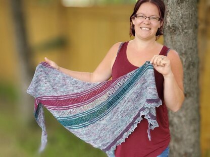 The Sock Set Shawl is the answer!!! It's a simple asymmetrical triangle full of relaxing garter, micro stripes and a little bit of yarn over fun that makes a perfect summer knit!!