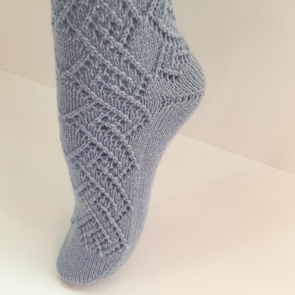 Die Socken sind in einem raffinierten Lochmuster gestrickt.