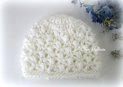 This hat is quick and easy to make and has a beautiful, soft lace and puffs design. Note that this pattern is available only in one size: 3-6 months. Pay attention to the gauge. In this pattern it's very important! The pattern is written in English, using the US crochet terminology.