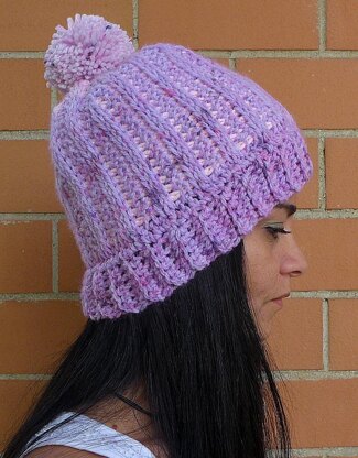 MATERIALS About 3.5 oz (100 g) of DK, Light worsted yarn (2 separate balls), in 2 different shades of pink (pom-pom included) Double-pointed Tunisian hook: H8 (5 mm) Regular Crochet hook: 7 (4.5 mm) Stitch marker(s) Tapestry needle Pom-Pom maker (or similar tools to make one) • STITCHES USED Tunisian Rib Stitch, worked in the round Regular crochet basics (single crochet BLO) • DIMENSIONS Woman size (about 21” - 54 cm circumference, 9” - 23 cm height)