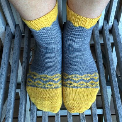 Moods of Colours Soft Sock (75% wool, 25% nylon) or other durable fingering weight yarn, 420m/100g. MC: 170 (205, 225) m / 185 (225, 245) yards CC: 140 (170, 200) m / 150 (185, 220) yards