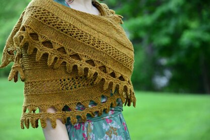 So I drew up a shawl like the setting sun in my sketchbook and knit it up - Solarita is a crescent shaped shawl with a garter stitch base and lacy border. The edge is a faux fringe look with a unique construction. Perfect for spring weather, chilly summer nights, or windy days in autumn.