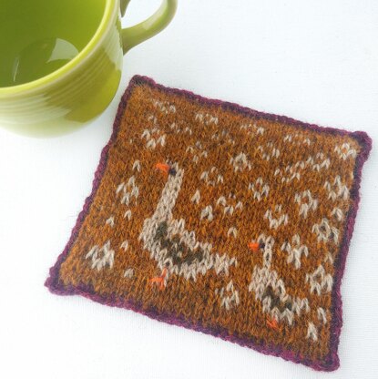 This is a pattern for a set of coasters. It is worked from the top down and in the round. Stitches are cast on, the chart is worked, and then sts are bound off. Duplicate st and embroidery embellishments may be added before working the simple crochet edge detail.