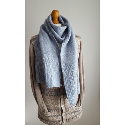 Generous-sized DK scarf with a simple matching tie-top hat, both knitted with a subtle moss stitch pattern. The set was designed to match the Somerville jumper that appeared in The Knitter Issue 120.