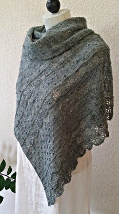 An asymmetric long triangular shape, the Somerville shawl begins at its widest point with an easy lace pattern. Fields of wildflower knots are worked with bands of lace while decreasing to a point. A tassel is added for the finishing touch.