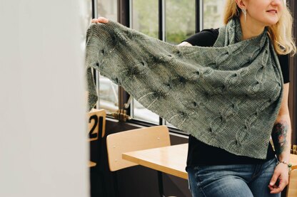 The third collaboration with my “personal” yarnie, my husband Marcin, the man behind the brand Martin’s Lab. This time I was lucky to create a cabled, 100% reversible shawl in color created for me, a darkish, earthly green called Thicket. Tibetan Singles is also the softest yarn I’ve worked with, almost indecenlty soft.