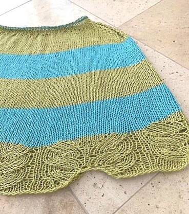 Sophie Marie, I was wanting to use that name for one of my patterns for a long while now. Well I found the one that fits it. This knitted in the round cowl with a beautiful lace border and two lovely melting into each other colors looks like a Sophie Marie to me. Strategic decreases are adding a pretty detail over your shoulders and the neckline is done with both colors held together lending the perfect finish.