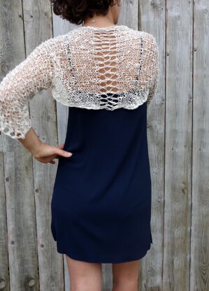 This graceful shrug is perfect to add some coverage on cool evenings. A quick and easy project worked flat, sideways on large needles for a delicate and airy look.