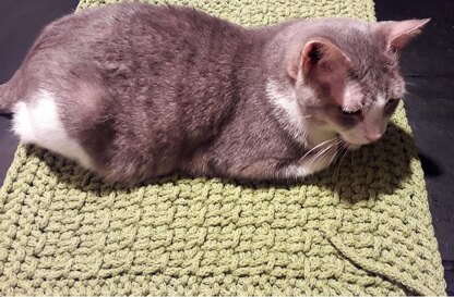 ENG Sottogatto is a mile-a-minute tunisian crochet cat blanket. The blanket shoudl be crocheted with a tight gauge, thus it will be very compact and insulate your pet from the cold floor. To crochet it, you must know (or learn) how to crochet 3 sts: the tunisian simple stitch, the tunisian purl stitch and the tunisian bamboo stitch. The bamboo stitch requires some dexterity and experience with the hook, that’s why the pattern is classified as “intermediate”.
