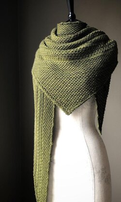 Soulace is a generously sized, asymmetric triangular shawl, knit from the bottom up. Beginning with just a few stitches, its stunning, texture rich fabric is achieved by working a simple slip stitch pattern. Take a closer look to reveal the nicely detailed edges, including a modified (and a bit less frilly) picot bind-off.