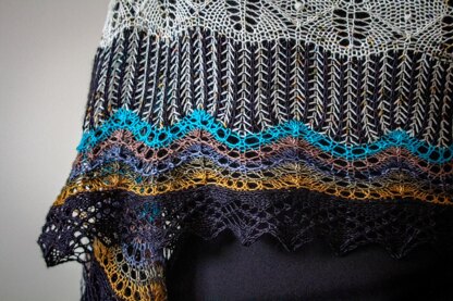 Have you ever watched the unique pulses, bars, and soundwaves that music visually creates? I was reminded of the visual qualities behind my favorite songs while I was designing this insanely fun shawl. Each section unique, yet all waving together to make a final shawl. Soundwave is a wavy top-down crescent-shaped shawl that is incredibly engaging, changing up skills often enough that there’s never a dull moment!