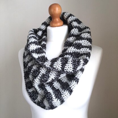 On chilly days, when you want to add interest to a plain outfit, or when you just want something comforting and snuggly to throw on, this reversible any-way-up cowl will fit the bill perfectly. It’s eye-catching, soft, cosy and easy-to-wear. It’s also very easy to make… but that can be your little secret!