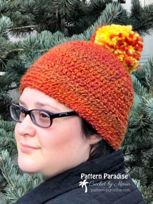 This simple hat has wonderful texture resulting from the yarn. You can embellish the hat with a pompom if you wish, or make it longer for a slouchy look. This hat was designed with the guys in mind, but works equally well for the gals too!