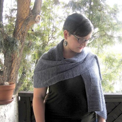 The wide bottom edge is knitted first, end to end, and stitches picked up along one side; short rows are worked to shape the shawl into a crescent.
