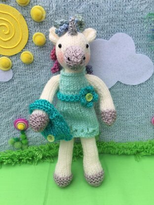 A cute and easy to follow Knitting Pattern for an adorable outfit for Sparkle the Unicorn. Consists of a dress and bag. I design all my toys myself and have been knitting since I was just a child.