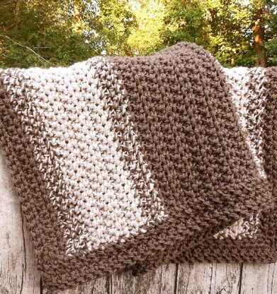5 skeins of Taupe and 4 skeins of Linen were used to complete the blanket as pictured.