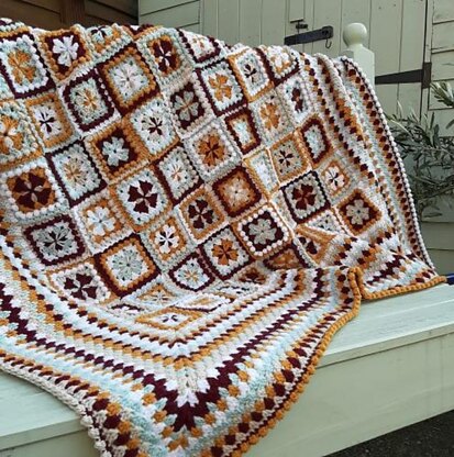 This blanket is full of colour and texture. I called this blanket the Spiced Biscuits Blanket because it reminds me of beautifully decorated colourful spiced biscuits, which I remember from my childhood. When you start working your squares and you complete the first four rounds, you will see what I mean, it does look like a biscuit.
